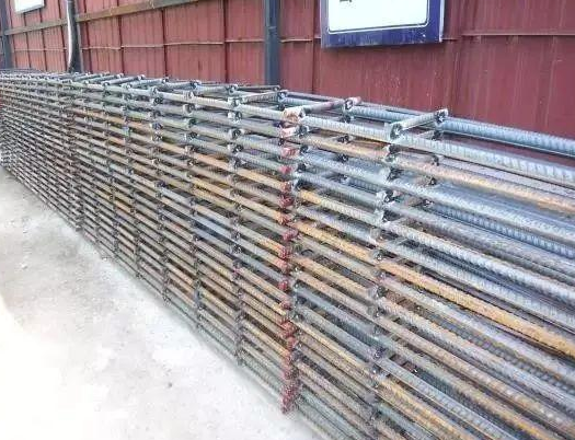 7、 双层钢筋网片中间应设置梯子筋,以固定钢筋间距。