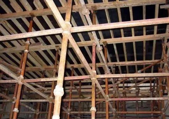 4、 支设立杆时,为防止把下层楼面混凝土压伤,立杆底部必须垫方木垫块;