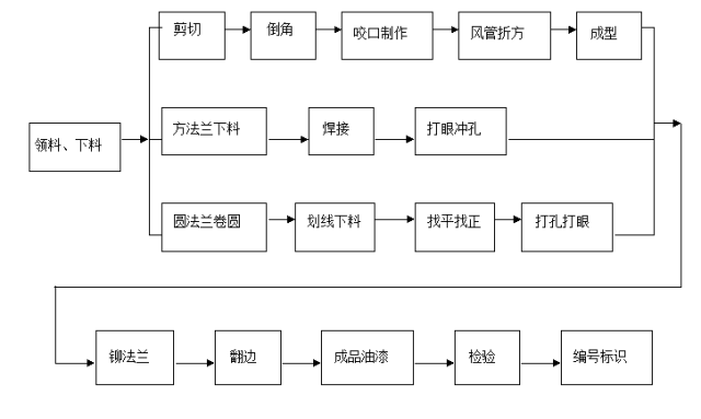 在风管加工前,应该预先对风管进行编号预排布,合理布置开风口、三通、支架等部位管段长度;风管各种标准件提前制作样品,大面积施工按样品标准制作。