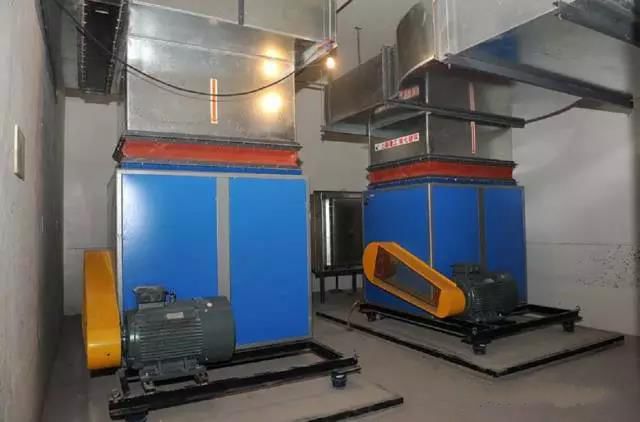 设备基础必须经过交接验收,其大小、平整度应满足设备安装要求。风机与基础接触处应有橡胶减振垫或弹簧减振器等减振措施,且减振电或弹簧应考虑动荷载。