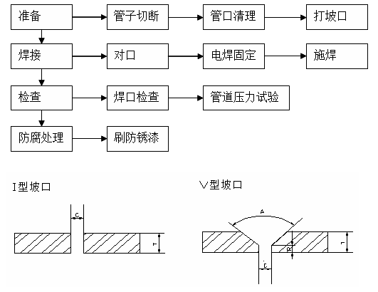 坡口机开口,标准美观;坡口氧化层与杂质打磨干净,坡口根部留有3mm缝隙,便于焊透,管道组对平直,无错边,开完坡口后要及时焊接。