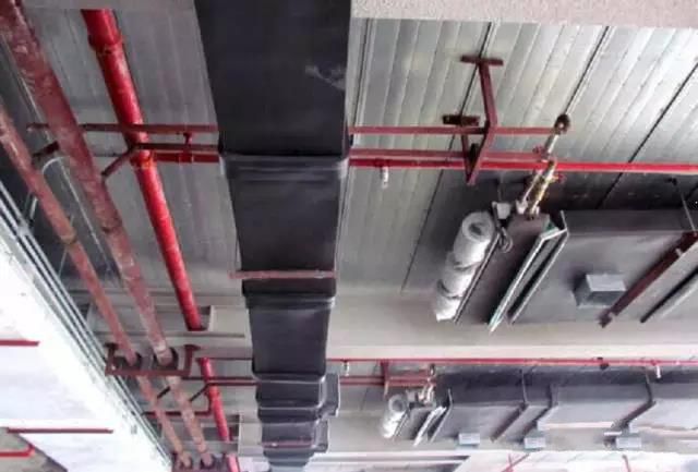 风管穿越防火墙应设有钢板厚度1.6mm及以上的套管。套管内部应用玻璃棉等不燃材料封堵,外面用防火泥抹面。