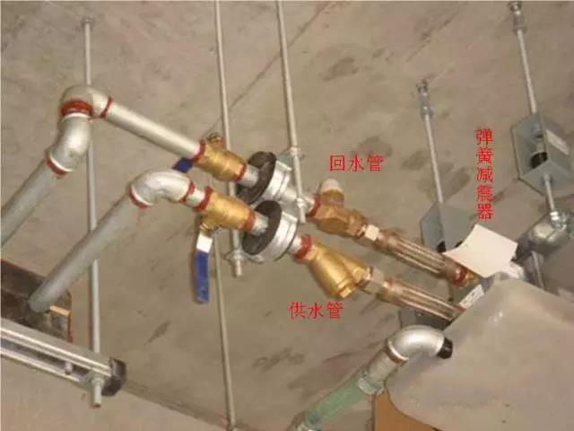 供水管依次为球阀(闸阀)-过滤器依次为球阀(闸阀)-过滤器-金属软管。回水管阀门及部件依次为球阀(闸阀)-电动二通阀-金属软管。所有阀门的阀柄不得朝下,电动二通阀应垂直向上安装。