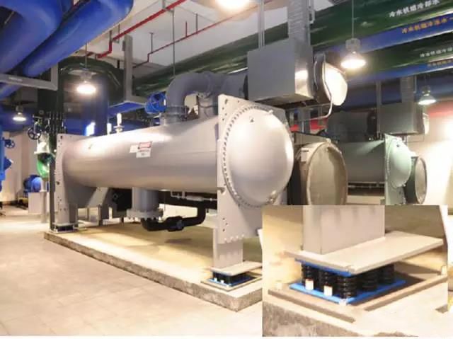 在弹簧减震器下部设置水平度调整钢板,便于设备一次就位 。机组找平可根据设备的具体外型选定测量基准面,用水平仪测量,拧住地板上的螺栓进行调整,机组纵向、横向的水平偏差均不大于1/1000。
