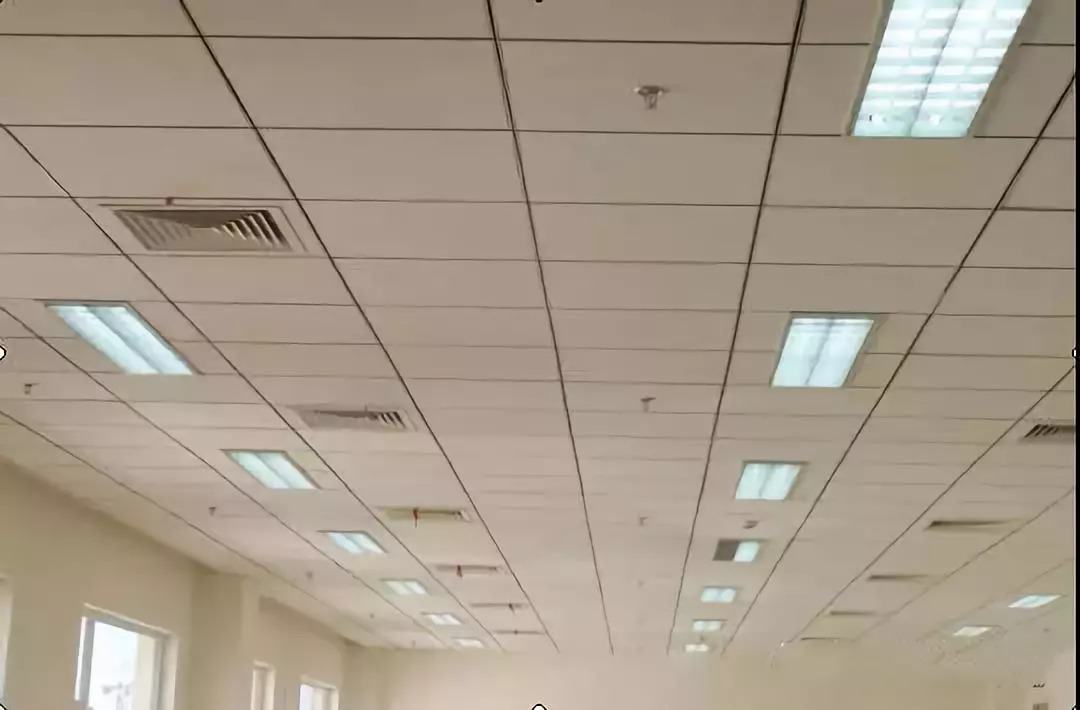 吊顶板上烟感、喷头、风口及灯具安装均匀合理的布局。
