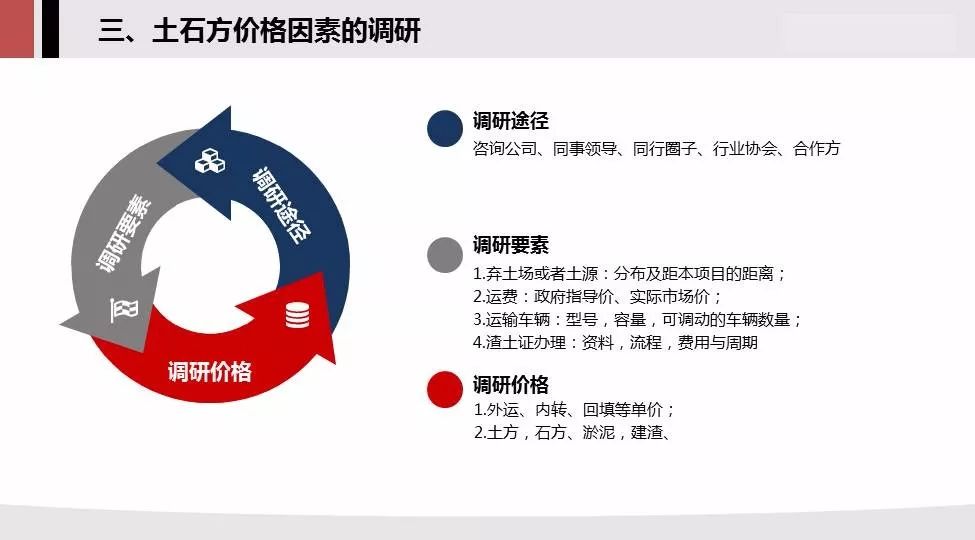 3.土方价格因素调研:对调研途径,调研要素,调研价格进行了简要说明;