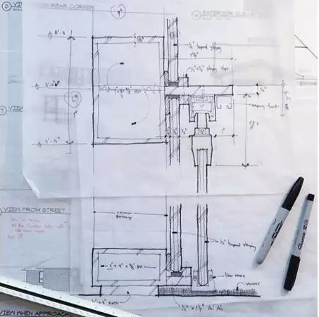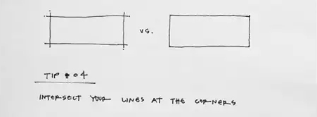 这是一个很纯粹的风格,它体现了手绘草图的不精确的特性:一种用绘画的方式来表现想法或者概念。这听起来有点像建筑学废话,但是它确实很有用。手绘草图不精确的特性是固有特性,尽管我们尝试着让它变得精准,但是它看起来还是草率而不准确的。通过让两条线的交界处有出头线,你仍然可以表达你想表达的想法(或者建筑造型),而不必非要专注于描绘一个完美的图形。