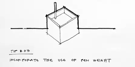 使用较粗笔尖的钢笔的另一个好处是它可以帮助你将注意力放在你应该放在的地方手绘草图的重点可能是什么。不同粗细的线型能够帮助观看者了解图纸中各类信息的次序,同时通过适当的技巧和窍门,它们甚至能够告诉看图的人在图纸中有哪些信息是完全不重要的。