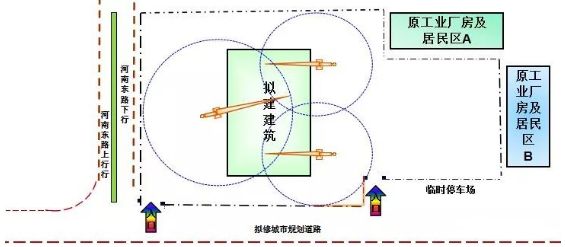 覆盖范围、距离建筑物的距离、群塔施工、高压线、方便安拆等