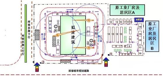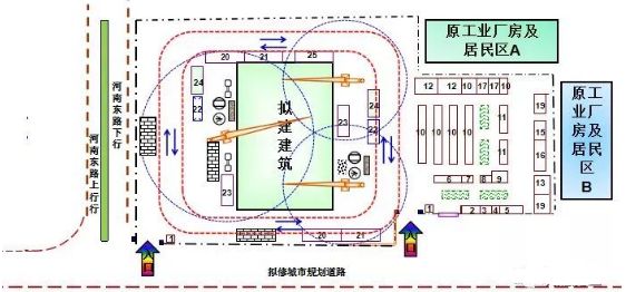 在整个施工过程中,工地上的实际布置情况是随时变动着的。为此,对于大型建筑工程,施工期限较长或建筑工地较为狭窄的工程,就需要按施工阶段来布置几张施工平面图,以便能把不同施工阶段内工地上的合理布置情况反映出来。