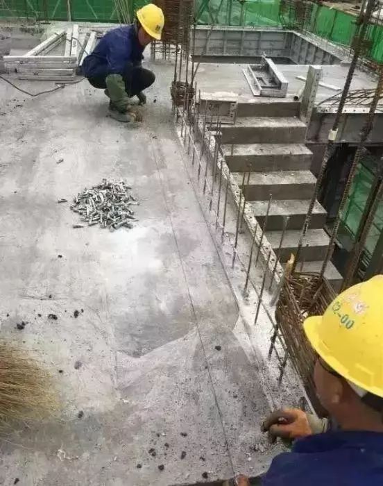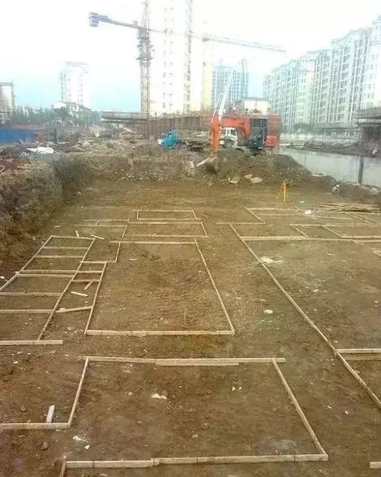 2、其中墙体、柱、剪力墙柱线要用彩色油漆、一般是红色油漆在墙柱边角做三角形标注,以利于筏板钢筋完成后墙柱钢筋主筋就位、摆放。