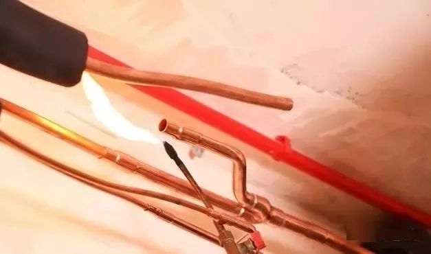 充氮焊接,需要另一位师傅向铜管内充入氮气,这样才能够避免铜管与氧气发生氧化反应产生聚合物堵塞铜管,造成制冷、制热能力下降。这些残渣在运行过程中会被慢慢吸入压缩机,严重会导致压缩机的烧毁。