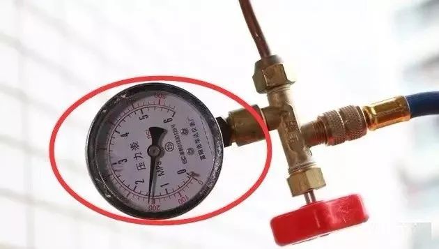 这个就是检测空调冷媒管压力的压力表,目前没有通入氮气,所以没有任何压力。下面我们来看一位空调师傅的操作流程: