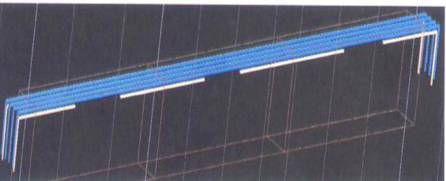 限位筋在纵向钢筋有两排或三排的情况下布设。布设于于第一排与第二排和第二排与第三排钢筋之间,垂直于梁跨方向布置,钢筋直径充当支撑两排钢筋间距的作用,所以其直径≧25mm且主筋直径,沿梁方向间距1m布设一支,个数取整加一。同一立面上下两排限位筋可不错开布设。