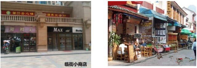 ◆如果主要服务对象为小区外部的商铺,则应考虑周边商业业态、街区功能和街道人流量来确定商铺功能 。