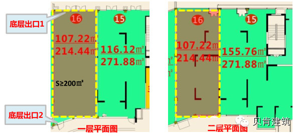 ◆商业服务网点的建筑面积超过200㎡的,底层应设置两个直接对外的出口。