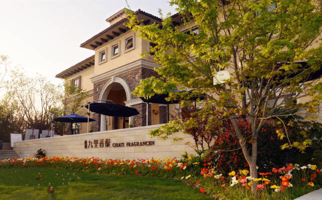 但如果是中式豪宅,就不太适合太花俏,而要追求一种高雅的效果。大门、景墙、景观小品、植物达到一种尊贵、和谐统一的效果。