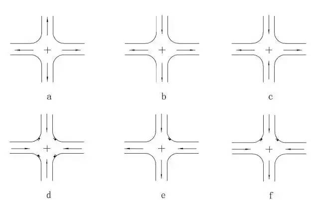 a、b、c 三种类型道路均有交叉中心点连接,行车较为平稳也不宜积水;