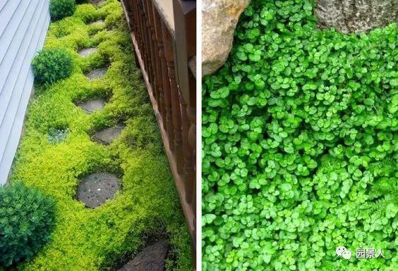 3.常绿地被。四季常青的地被植物,称为常绿地被植物。这类植物无明届的休眠期,一般在春季交替换叶。北方寒冷地区常采用常绿针叶类地被植物及少量抗寒性较强的常绿阔叶植物,如铺地柏、麦冬类、富贵草、常春藤等。南方大部分地区可采用的常绿地被非常丰富,如洒金珊瑚、沿阶草、花叶蔓常春花络石、蔓长春花等。
