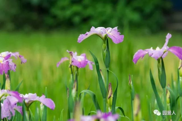 5.耐湿地被植物。此类植物适合栽植在湿润的环境中,如溪边、沼泽、湿地处。如溪荪、黄菖蒲、鱼腥草、射干等。