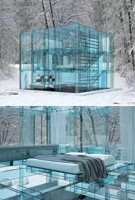 英国建筑师卡罗圣安布罗焦近期展出全玻璃房屋设计作品。这些户型全由透明的玻璃组成,不仅所有墙壁和屋顶是玻璃的,而且室内的摆设,如餐桌、椅子和楼梯都是玻璃。