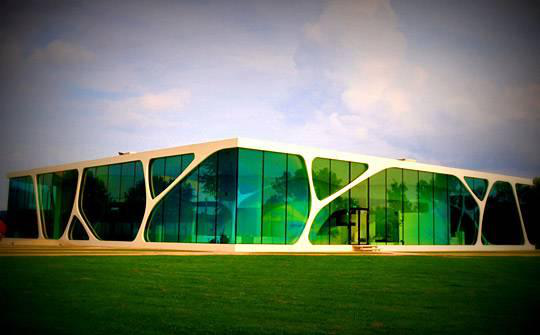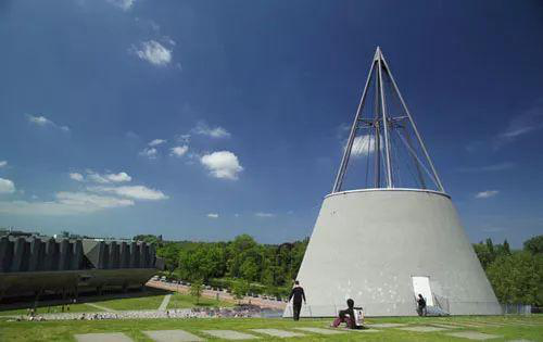 法国里昂的圆柱体住宅,用混凝土建造,用一系列长短不一的、中间段为玻璃罩简单的圆柱体不断重复形成,为室内形成一个开放式的平面布局。