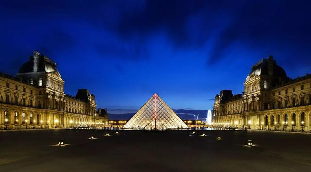 一个闻名遐迩的四棱锥建筑,卢浮宫扩建工程,贝律铭的玻璃金字塔。