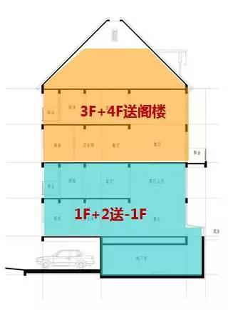 下面我们来看这几套叠墅的户型是如何实现1:1的赠送面积的。