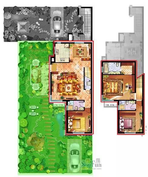 我们来具体看看它是如何设计三叠墅中各套户型的?