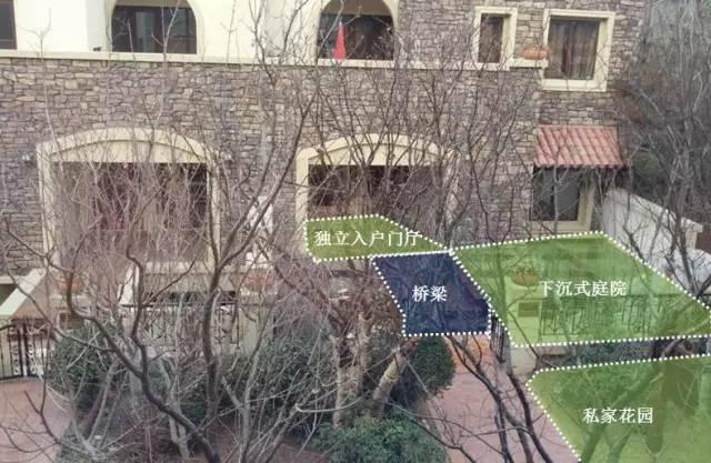 下叠套:由南向1F途径下叠户型自身的私家花园、下沉式花园,经桥梁至下叠的独立入户门厅内;