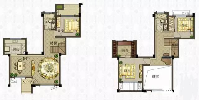 具体的操作方式就是:通过占用下叠住户空间价值较低的北向空间,将其设计为入户口,并做成独立的用餐空间,提升上叠套的墅级感受。