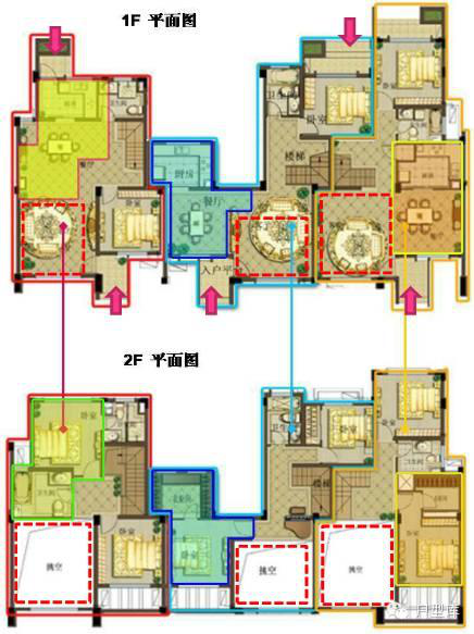 总的来说,此六叠墅融合了叠墅、复式、跃层、错层等结构产品,由于保证户内结构,故在公共入户方式上限定空间,而户型通过套内楼梯进行空间转换,有限节省建筑成本。