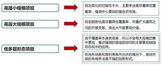 而高层大规模项目,这时就会从从多单元组团到强调大尺度的空间布局形式。