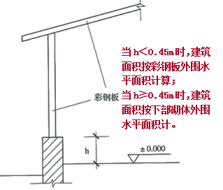 18.围护结构不垂直于水平面的楼层,应按其底板面的外墙外围水平面积计算。结构净高在2.10m及以上的部位,应计算全面积;结构净高在1.20m及以上至2.10m以下的部位,应计算1/2面积;结构净高在1.20m以下的部位,不应计算建筑面积。
