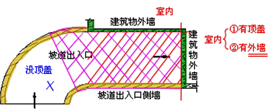 6.出入口外墙外侧坡道有顶盖的部位,应按其外墙结构外围水平面积的1/2计算面积。