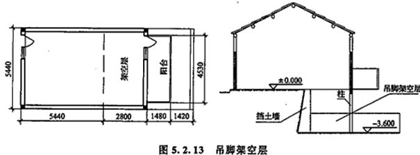 7.建筑物架空层及坡地建筑物吊脚架空层,应按其顶板水平投影计算建筑面积。结构层高在2.20m及以上的,应计算全面积;结构层高在2.20m以下的,应计算1/2面积。