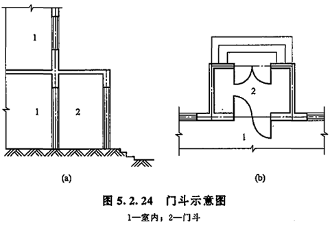 15.门斗应按其围护结构外围水平面积计算建筑面积,且结构层高在2.20m及以上的,应计算全面积;结构层高在2.20m以下的,应计算1/2面积。