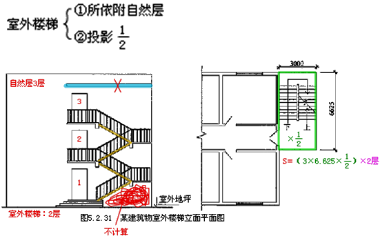 20.室外楼梯应并入所依附建筑物自然层,并应按其水平投影面积的1/2计算建筑面积。