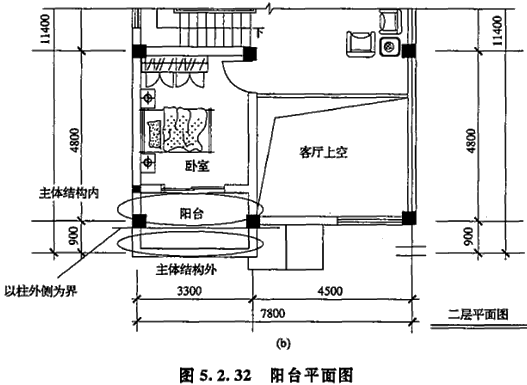21.在主体结构内的阳台,应按其结构外围水平面积计算全面积;在主体结构外的阳台,应按其结构底板水平投影面积计算1/2面积。
