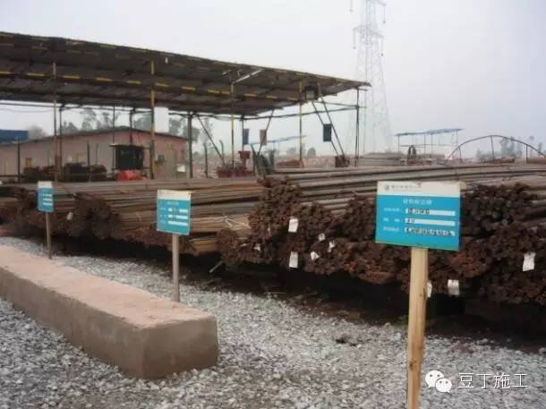 2、钢筋原材应放在仓库或料棚内,钢筋应垫离地面200mm以上,地面干燥的露天场地,场地周围应有排水措施,必要时加盖雨布,堆放期尽量缩短;仓库应设专人验收收入仓库钢筋,根据钢筋型号划分钢筋堆放区并设标识。