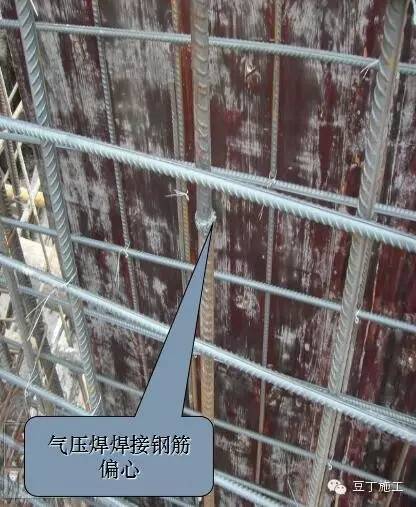 2、钢筋骨架绑扎不当,造成骨架外形尺寸偏大,局部抵触模板;