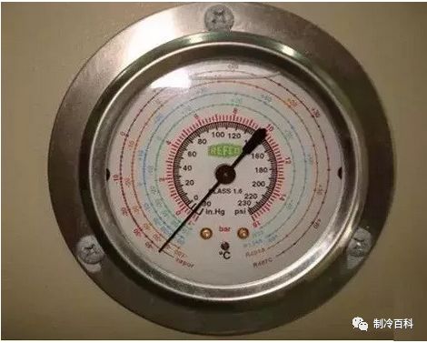 6. 检查压缩机中压,中压压力在0kgf/cm左右,停止压缩机运行,同时将水冷凝器进液阀关住,氟里昂即收液收到水冷凝器里了。