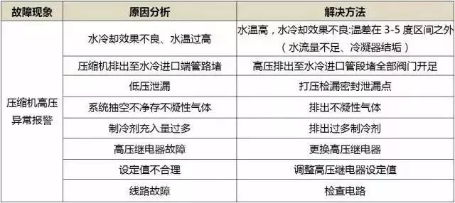 1. 冷却水没有供应或流量不足,可能导致压缩机损坏和安全阀开启导致制冷剂泄漏;