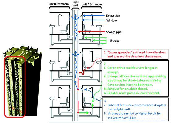 3)浴室抽气扇开动时,可能将浴室内的飞沫带到天井,令受污染的空气通过打开的窗户,进入相隔数层的住户。