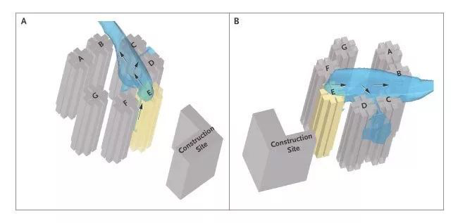 4)淘大花园E座于2003年3月21日黄昏曾暂停厕所水供应达16小时,为8号住户出现裂缝的厕所水渠进行维修,此举令排污渠水流减慢,助长飞沫在渠内的流动。