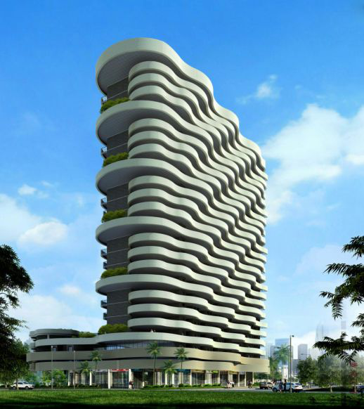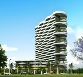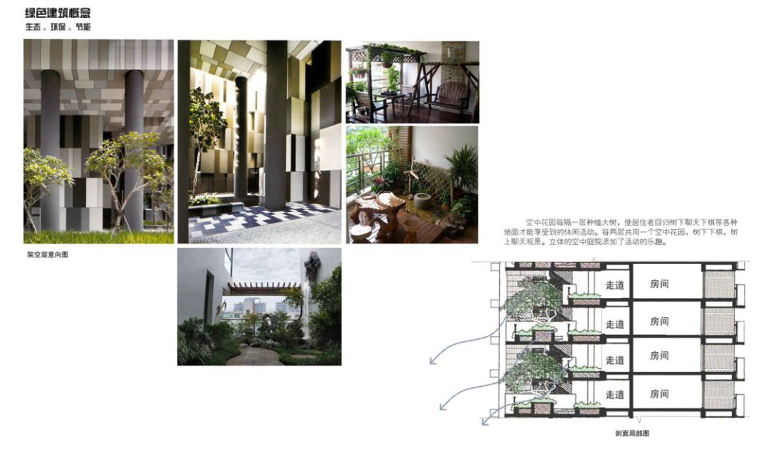 空中花园每隔一层种植大树,使居住者回归树下聊天下棋等各种地面才能享受到的休闲活动。每两层共用一个空中花园,树下下棋,树上聊天观景。立体的空中庭院添加了活动的乐趣。