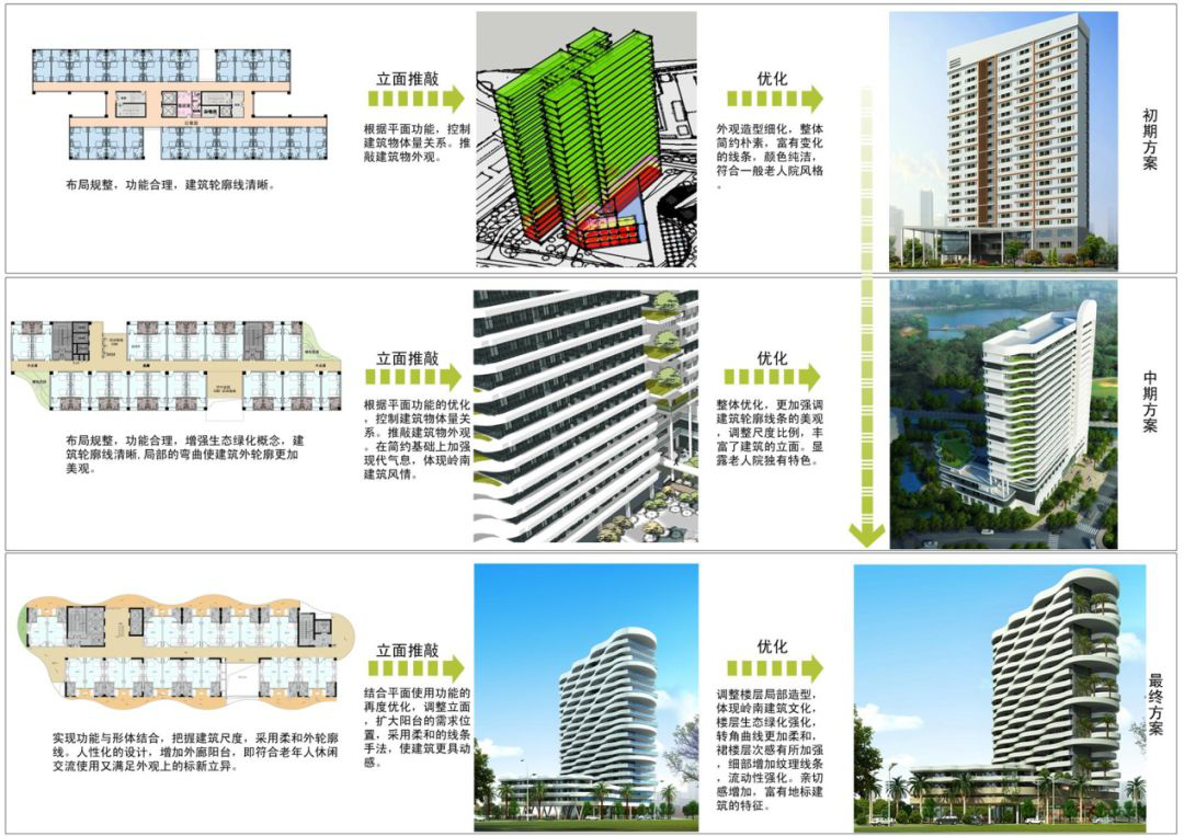 本项目是华南地区首个高层老人院,高层老人院不仅解决了老人居住对日照等基本要求,也通过阳台与造型的巧妙结合解决了集体活动场地等老年人对社交的心里需求;同时,高层老人院也顺应当下城市建筑对节地、节材等绿建要求;让高层居住老人享受到像低层建筑的阳光雨露、活动场地、娱乐场地、绿化庭院,这也是城市发展的趋势。