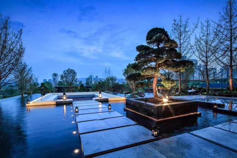 而同样的手法,在杭州新湖武林国际、杭州滨江阳光海岸、香港新鸿基Peak One 壹号云顶、香港新鸿基YOHO Park也运用了规整的现代设计结合花镜的处理方式来营造出浪漫的花园效果。