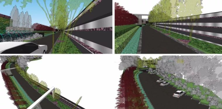 夏季的宅间绿廊采用深绿,中绿,浅绿的协调色