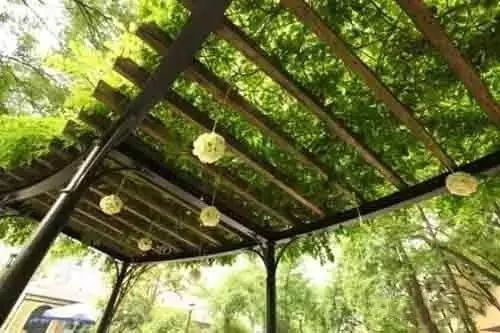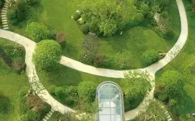 还有一种垂直空间是利用植物封闭垂直面,开敞顶平面,所形成的空间。这种空间只有上方是开放的,使人仰视,视线被引导向空中,可以给人以强烈的封闭感和隔离感,一般纪念花园中经常出现这种空间。